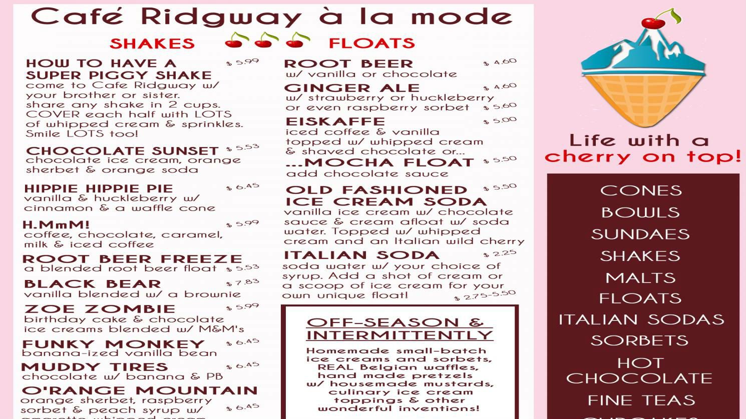 Our award-winning restaurants serve everything from scrumptious burgers and sizzling steaks to European and Central American cuisine. Ridgway offers lots of outdoor dining, our own brewery and your pick of the perfect margarita. Whether you're looking for a quiet, elegant meal or a quick, casual snack, we have the bases covered.