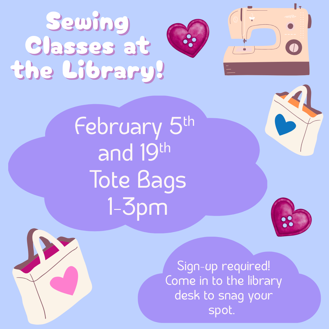 Sign-up required! Come in to the library desk to snag your spot. Free sewing classes at the library…