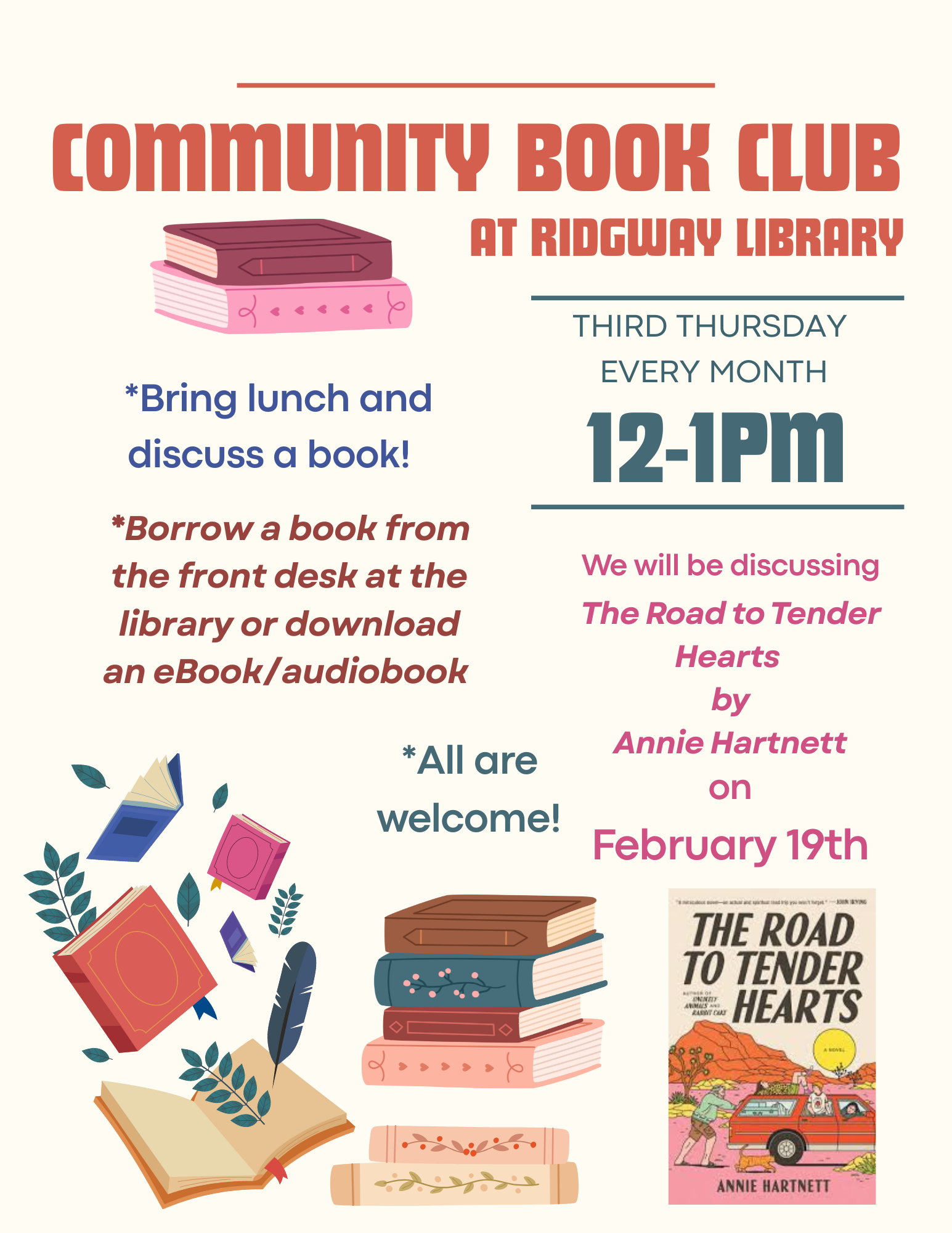 Community Book Club at Ridgway Library will be noon to 1pm every third Thursday of every month…