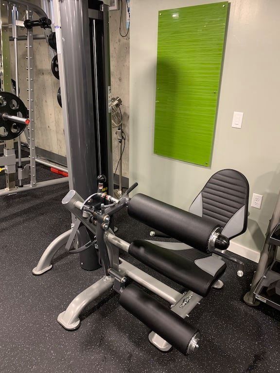 We have two treadmills, an elliptical, Water Rower, two indoor bikes, a cable machine, leg press, squat rack, Smith machine, free weights from 2.5 lbs to 70 lbs, kettlebells, several TRX, an ARX, several multi-function weight machines, and more!