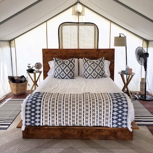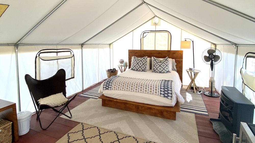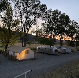 We have an array of “glamping” (glamorous camping) accommodations that vary from canvas wall tents to tiny homes and vintage Airstreams. We also have standard campsites for travelers with their own RVs.