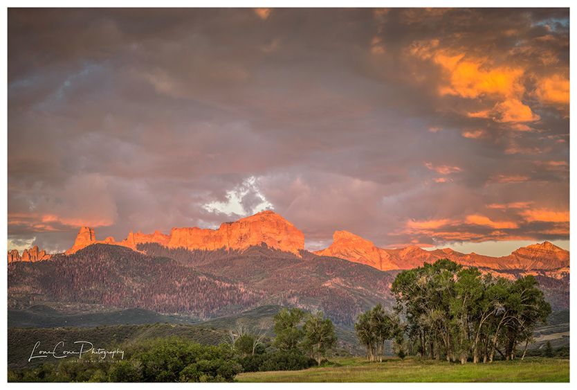 The photo winner is Natalie Heller, who will be awarded $200, for her photograph titled “Summer Sunset over the Cimmarons.” Heller, who sells her photos through Lonecone Photography, explained the genesis of the photo: “The sunsets this summer were filled with beautiful clouds due to the monsoons and I knew the combination of sky and alpenglow against Courthouse Mountain would make a captivating image. The grand old cottonwoods anchor the image with their majestic presence.”