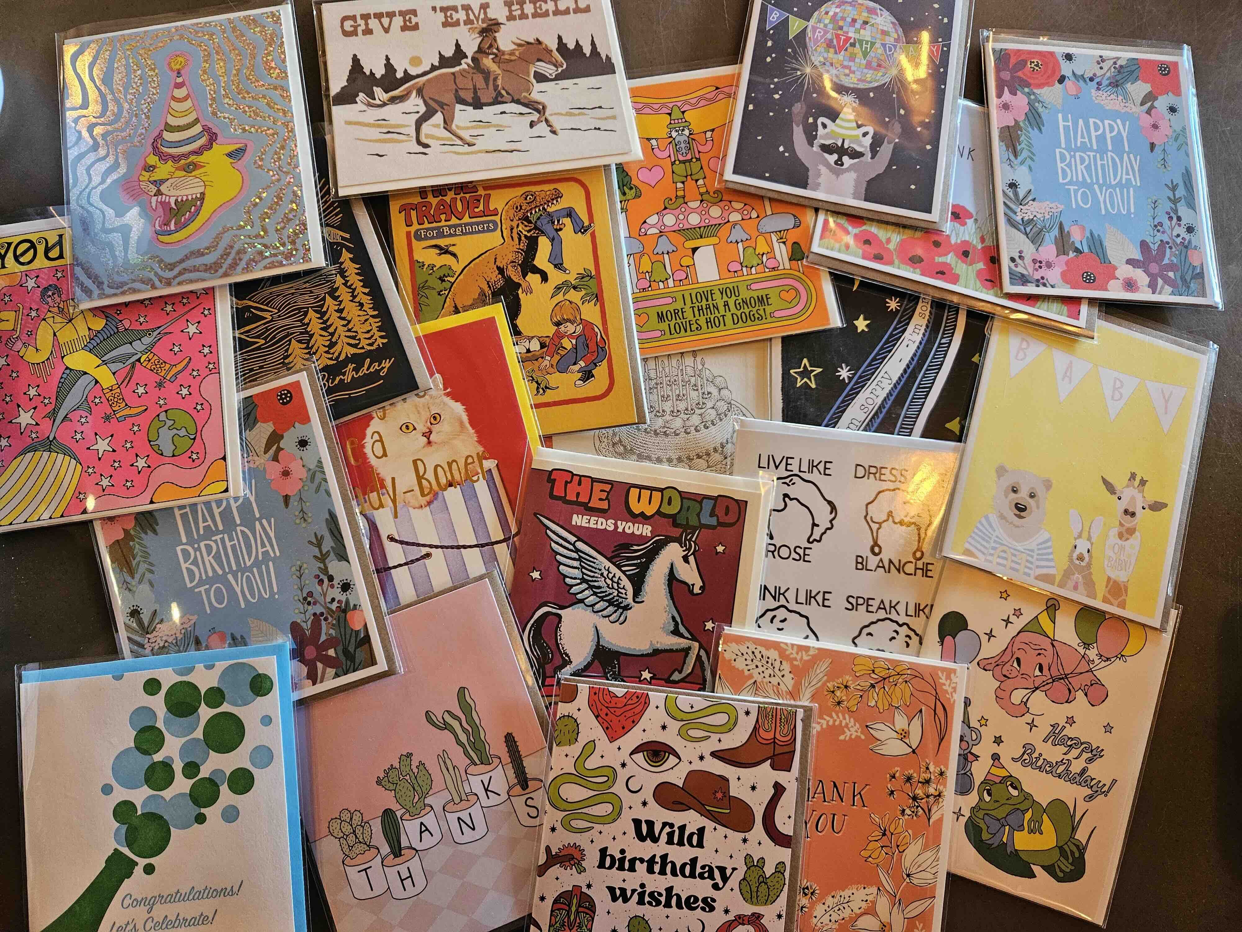 Our store is well-stocked with a wide range of essential office supplies. Additionally, we feature a curated selection of unique gifts from independent artists and are known for our ever-changing variety of greeting cards.
