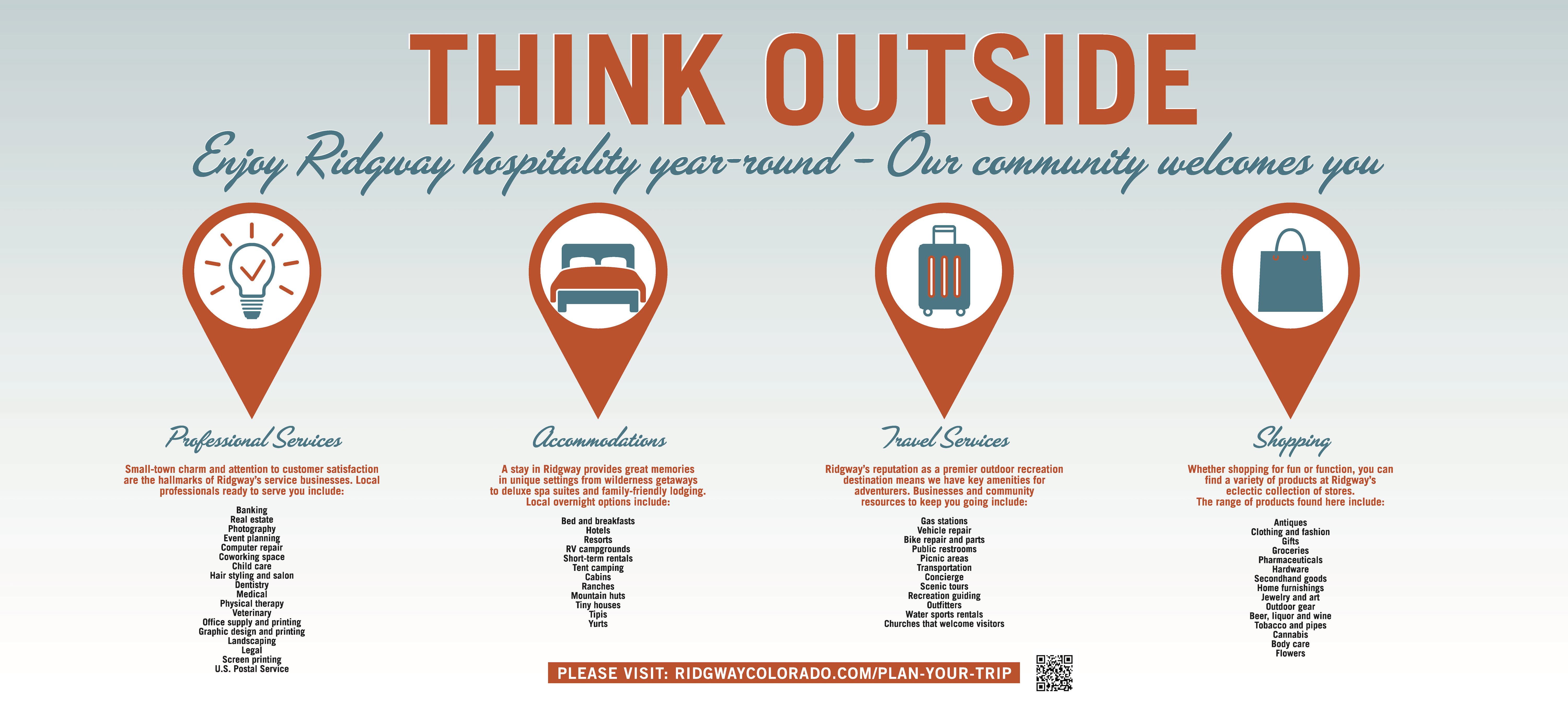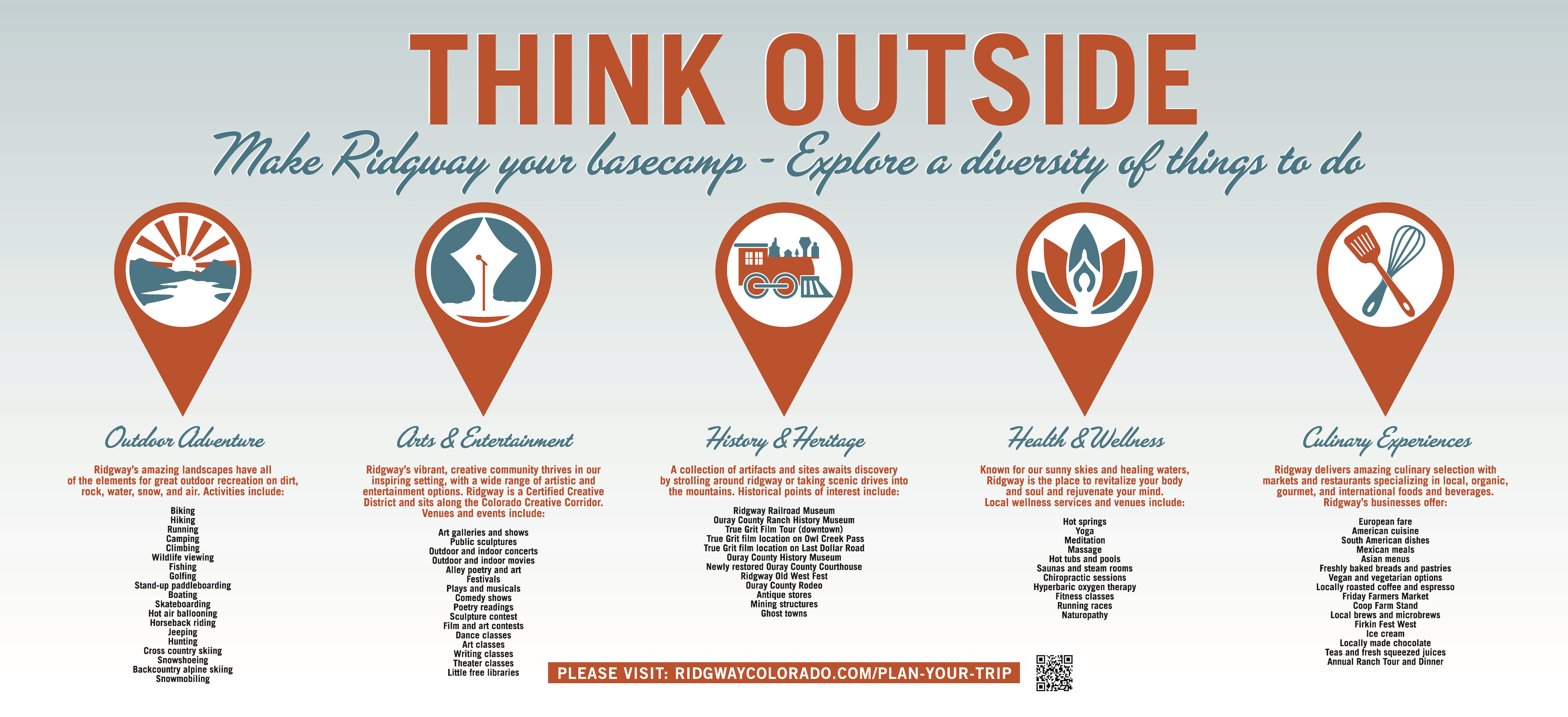 The outside of the Ridgway Visitor Center was recently outfitted with helpful information to guide travelers to points of interest, services, and products around the Ridgway area.