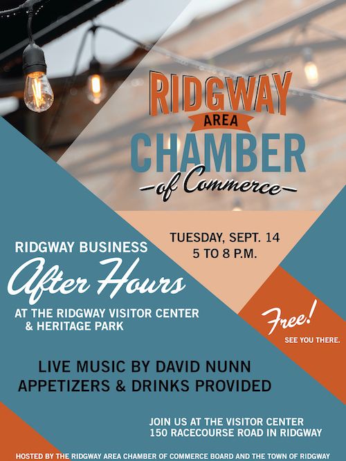 The business community is invited to view the current changes and learn about future plans at the Ridgway Business After Hours at the Ridgway Visitor Center and Heritage Park at 150 Racecourse Rd. Hosted by the Ridgway Area Chamber of Commerce (RACC) Board and the Town of Ridgway, the event on Tuesday, September 14 from 5 to 8 p.m. is also an opportunity for networking and celebrating the efforts of the Visitor Center volunteer staff who provided information to visitors all summer.